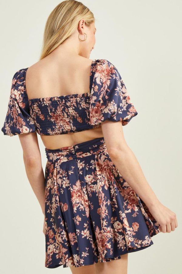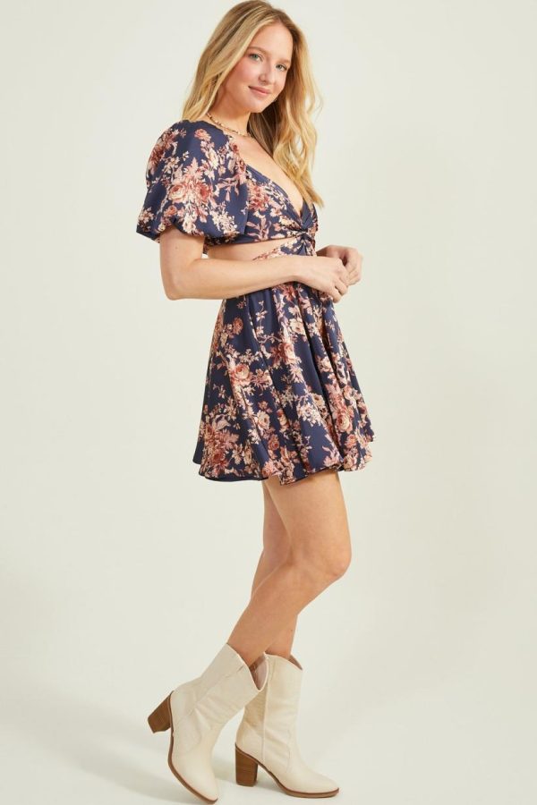 This stunning dress features a unique twisted top design that adds a touch of elegance and femininity to the overall look. The puff sleeves create a playful and romantic feel, while the side cutouts add a subtle hint of sophistication. The sweet floral pattern adds a subtle pop of color and liveliness. Whether you’re dressing up for a wedding or simply looking for a chic and stylish outfit for a night out, this dress is sure to turn heads and make you feel beautiful.