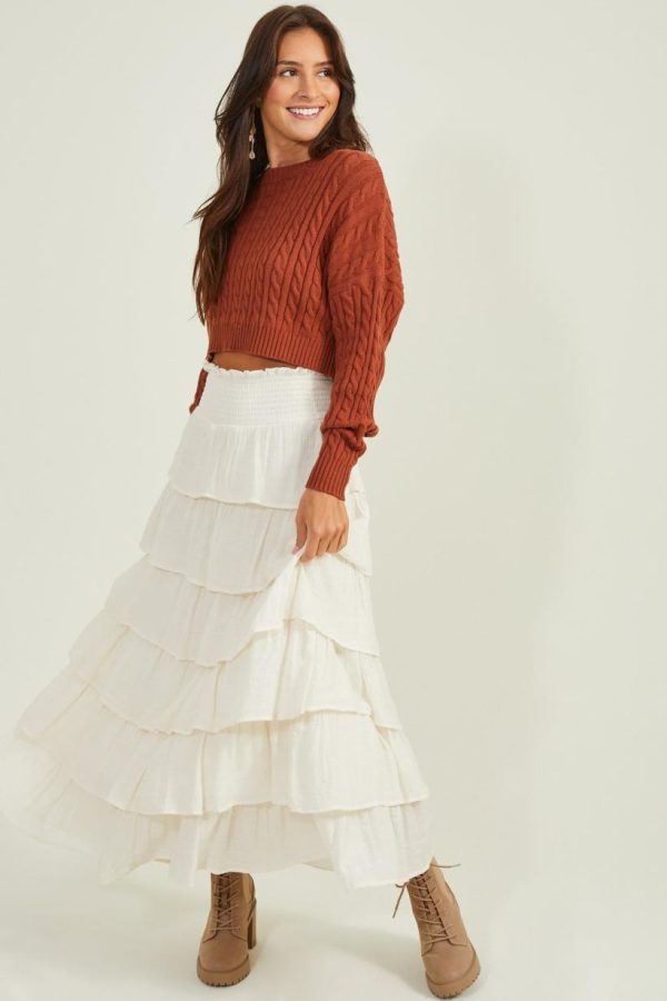 Get cozy in this cropped Charlie pullover. With its relaxed fit and timeless cable-knit detailing, this sweater will be a staple in your close this Autumn season!