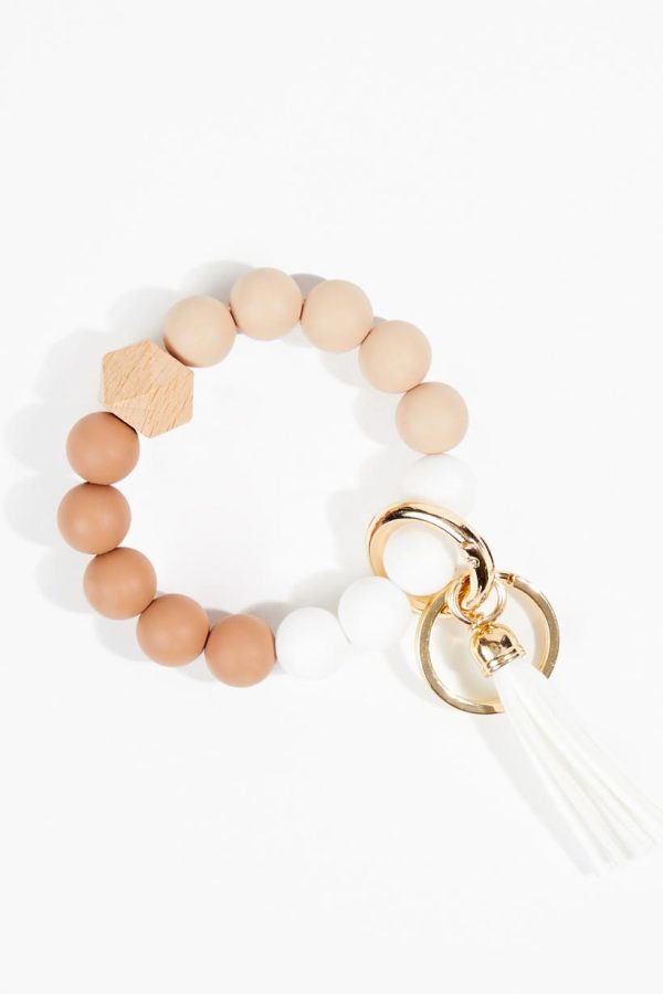Add a pop of color to your keys with this fun and playful mixed color block rubber bead circle keychain! Featuring a colorful combination of rubber beads arranged in a circular pattern, this keychain is both stylish and functional. With a tassel and keyring closure, this keychain is easy to attach to your keys or any other accessories you want to add a touch of color to. The mixed color block design adds a playful touch to any outfit, making it the perfect accessory for anyone who loves to express their unique sense of style.