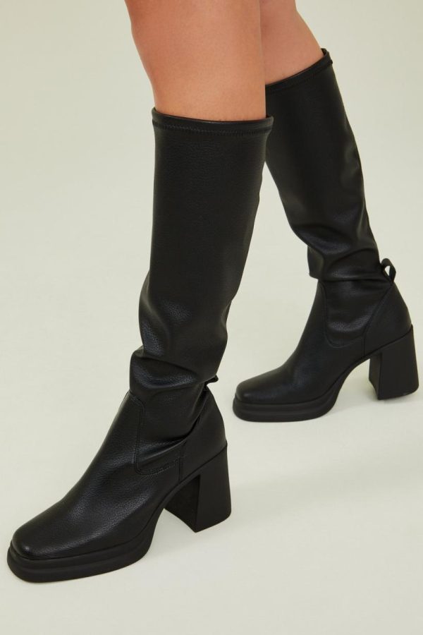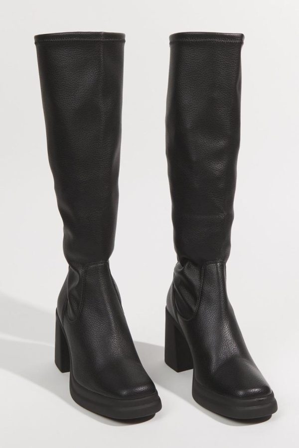 Elevate your look with these knee high platform boots, designed to make a statement with their bold height and confident style.