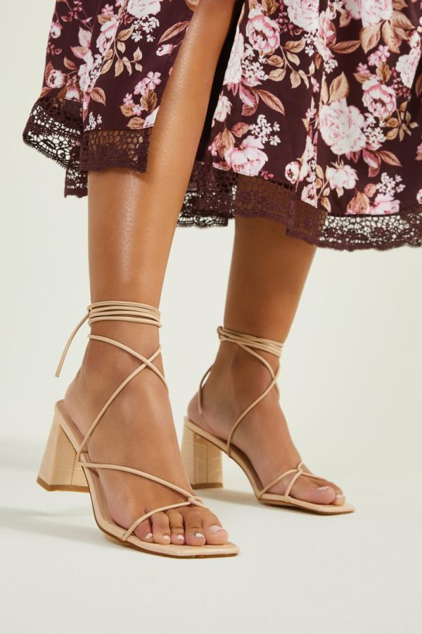 ONLINE EXCLUSIVE // Enhance your look with these ankle wrap heels, designed to effortlessly add a touch of elegance and sophistication to your outfit.