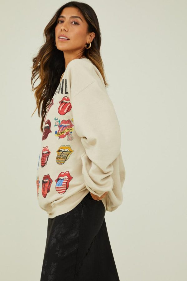 Indulge in iconic rock ‘n’ roll vibes with this oversized fleece sweatshirt adorned by a distressed Rolling Stones tongue graphic. This sweatshirt merges ultimate comfort with timeless style, offering a relaxed fit and plush fleece texture that’s perfect for lounging or making a fun statement.